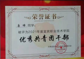 化工12001团支部组织开展了一系列主题鲜明、内容丰富、形式多样的社会实践、志愿服务,引导青年学生积极参加“宜宾市创建全国文明城市志愿服务”、“学雷锋志愿服务活动”、“2022世界动力电池大会志愿服务”、“第五届‘四川工匠杯’暨四川省第一届技工院校职业技能大赛志愿服务”等活动。5人荣获“校园文明卫士”称号,1人荣获世界动力电池大会“优秀志愿者”。