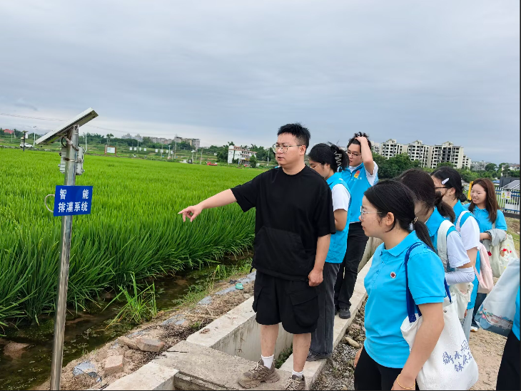 充分发挥专业优势,引导学生肩负历史使命,立大志、明大德、成大才、担大任,努力成为堪当民族复兴重任的时代新人。7月5日,宜宾职业技术学院新能源电池学院“绿材赋能·筑梦乡村”“三下乡”社会实践团队走进宜宾市三江新区江南镇万亩“天府粮仓”示范区,围绕“光伏+农业”主题开展科技助农调查实践。团队聚焦育秧育苗中心智能化、太阳能设备在农田监测与安防中的应用,结合专业实际,与负责人邓旭老师共同探讨光伏技术赋能乡村产业振兴创新路径。