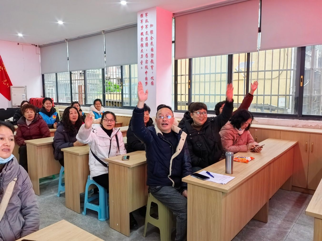 活动尚未正式开始,不少社区居民早早就来到现场等候,志愿者主讲人利用PPT,用亲切易懂的方言和口语,向在场长者系统讲解了冬季养生知识。讲解过程中,不仅重点阐释了 “早卧晚起、必待日光” 的传统养生作息理念,推荐了羊肉、萝卜、黑芝麻等适合冬季的温补食材,还针对老年人高发的高血压、冬季感冒等疾病,深入剖析诱因与科学预防措施。同时,围绕老年人日常生活安全,就防跌倒技巧、冬季洗澡注意事项等关键问题给出细致贴心的提示,内容实用、指导性强,赢得现场长者的认真聆听与阵阵点头。