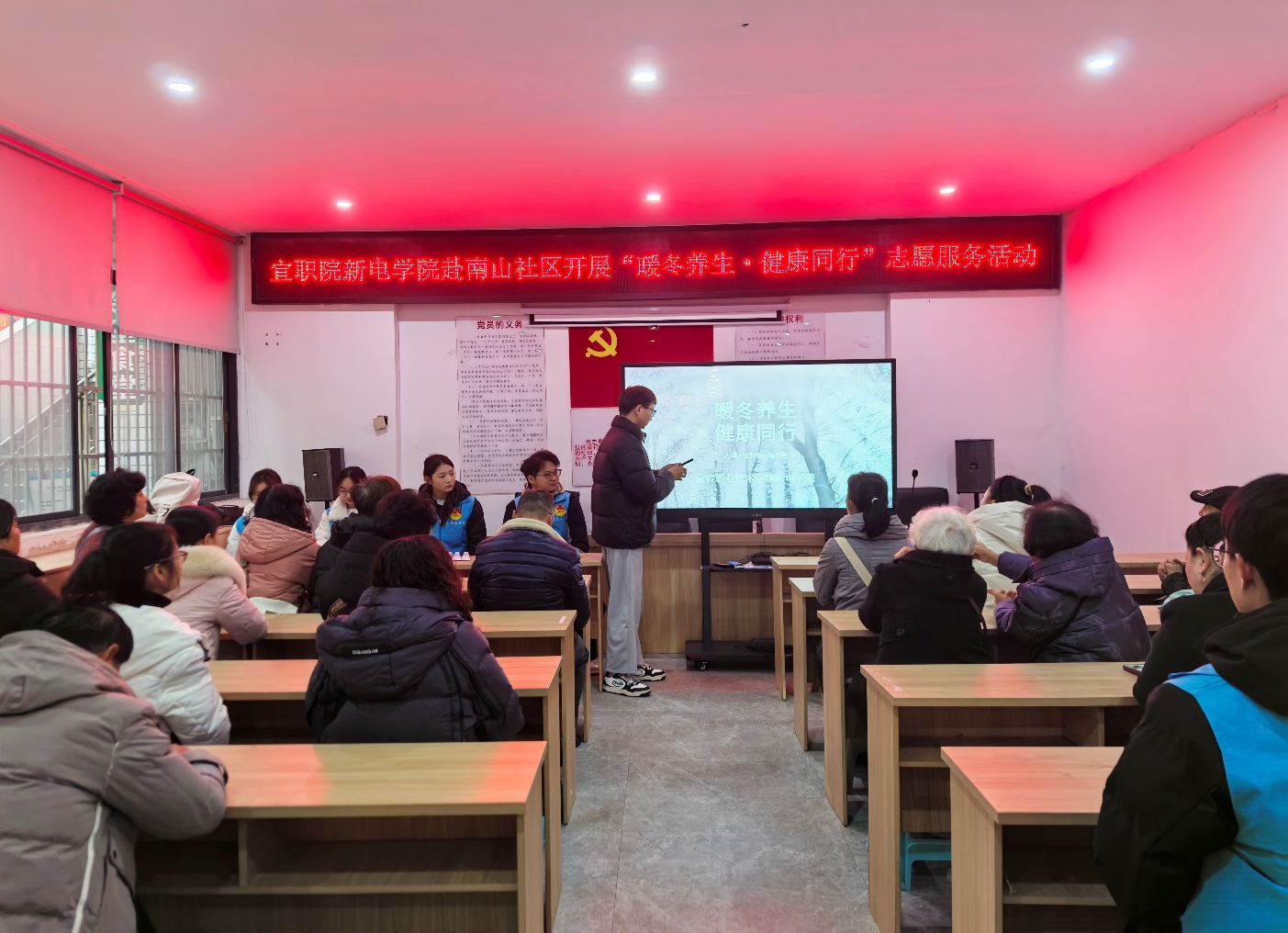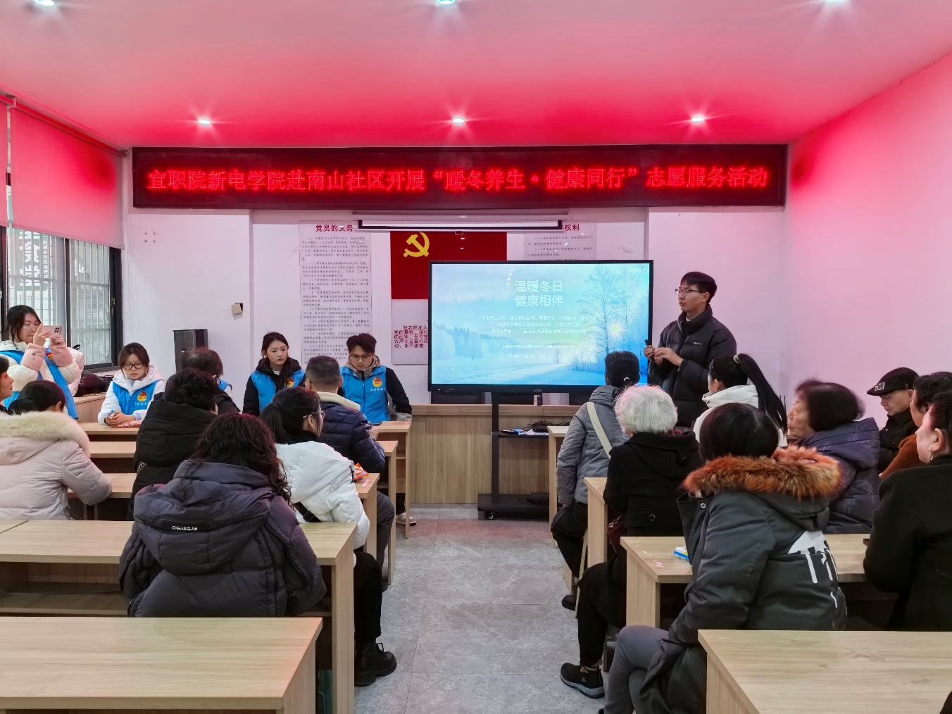 深入践行志愿服务精神,弘扬敬老爱老传统美德,为发挥高校服务社区、奉献社会的职能,12 月 26 日上午,新能源电池学院志愿服务团队走进南溪区南山社区,成功举办以 “暖冬养生,健康同行” 为主题的冬季养生科普助老志愿服务活动,为社区送上贴心的健康指导与冬日温暖。
