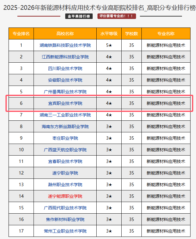 近日,金平果排行榜评价数据显示,我校新能源电池学院新能源材料应用技术专业在全国高职院校中脱颖而出,进入四星层次,标志着该专业正式跻身全国第二阵营。这一成绩不仅是对我校在新能源材料领域教育成果的高度认可,也为学校未来在该专业的进一步发展奠定了坚实基础。