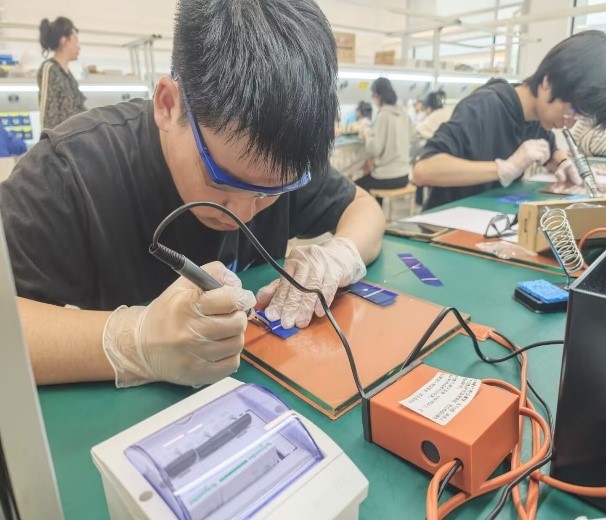 决赛于4月23日在新能源楼302实训室举行,以光伏组件实践技能竞赛为主。赛前,学院还组织了针对性的培训,帮助参赛者更好地理解和掌握光伏组件生产技术的关键要点。决赛考核的是光伏组件组装手动串焊工艺技能,这不仅是对参赛者专业技能与精细操作能力的考验,更是对其耐心与专注度的全方位挑战。参赛者们在比赛中展示了扎实的专业知识和精湛的操作技艺,赢得了评委们的一致好评。