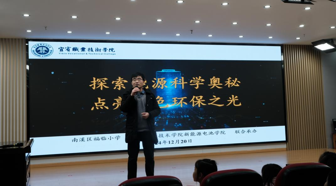 按照宜宾职业技术学院关于“三全育人”中科研育人工作要求,新能源电池学院于2024年12月20日组织师生到南溪区福临小学开展以“探索能源科学奥秘,点亮绿色环保之光”为主题的新能源科技进校园活动。
