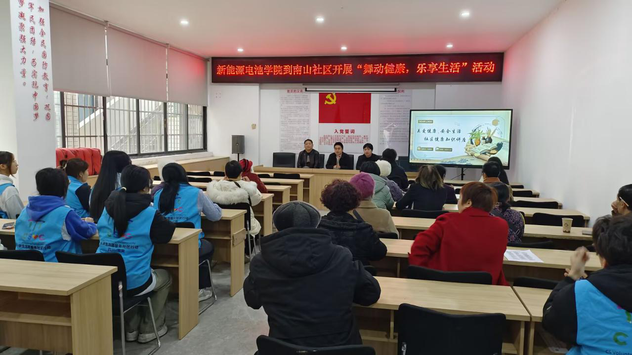 3月13日,新能源电池学院(以下简称新电学院)党总支书记先元华带队到南溪区南山社区开展主题为“舞动健康,乐享生活”雷锋志愿者服务活动。
